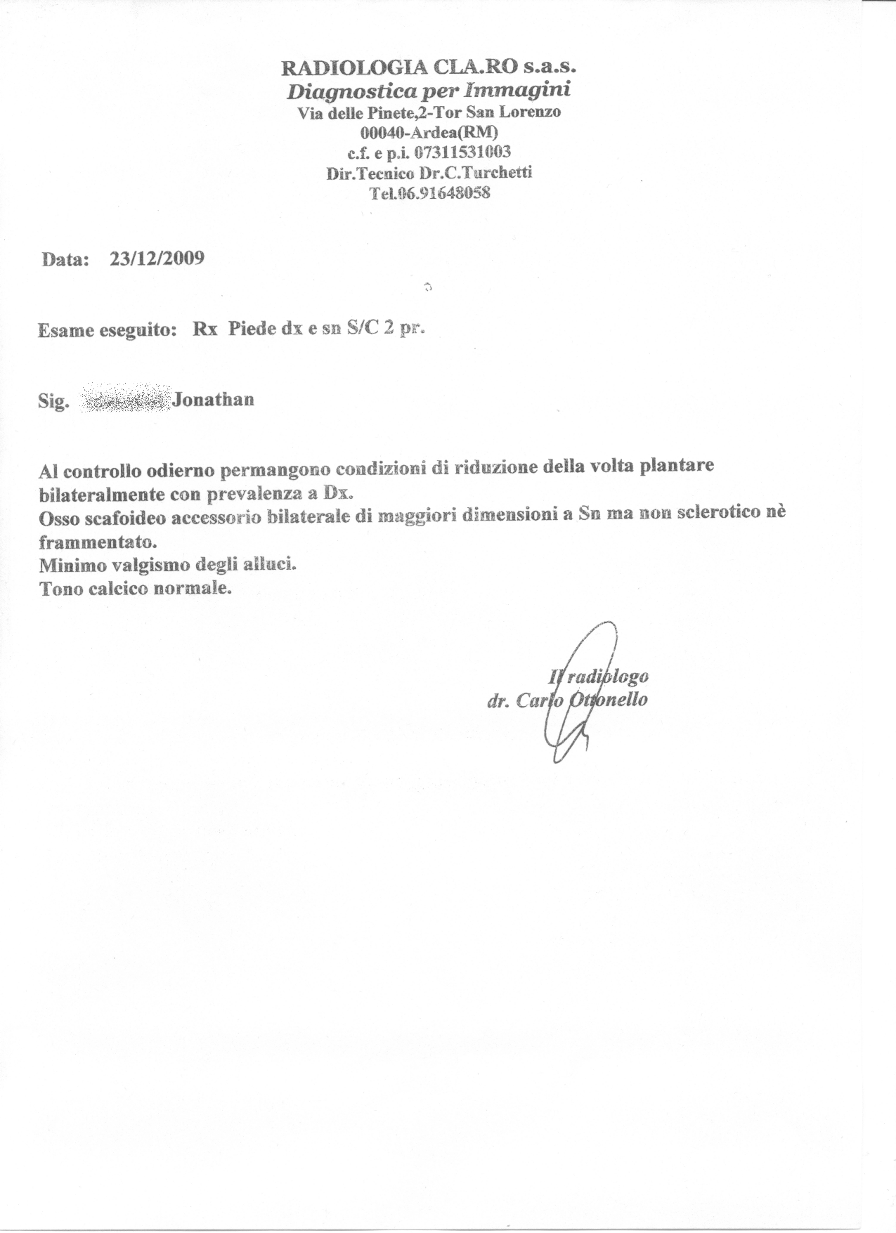 Rx piede destro e sinistro sottocarico del 23 dicembre 2009