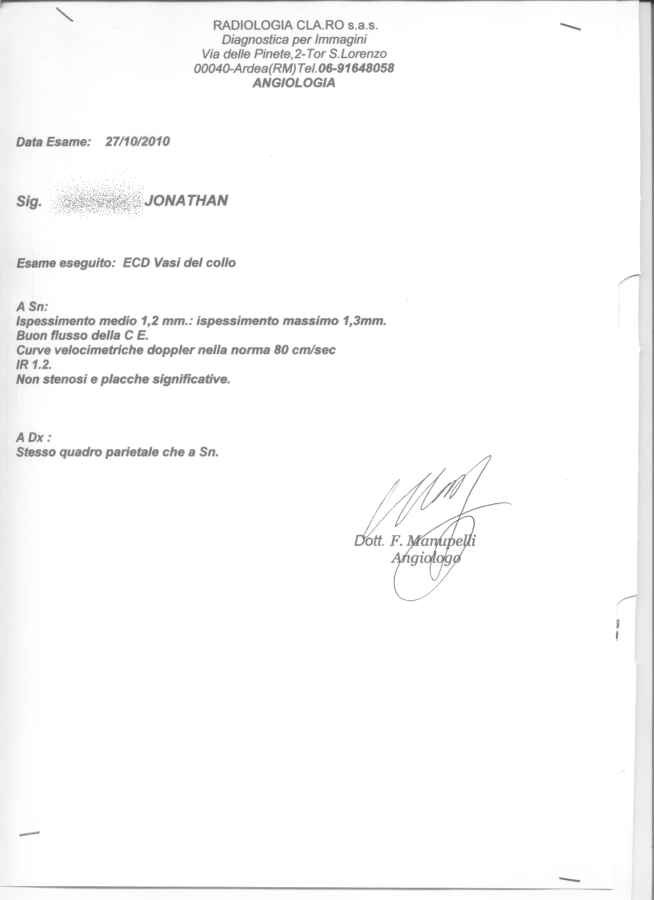 Ecocolodoppler vasi del collo del 27 ottobre 2010