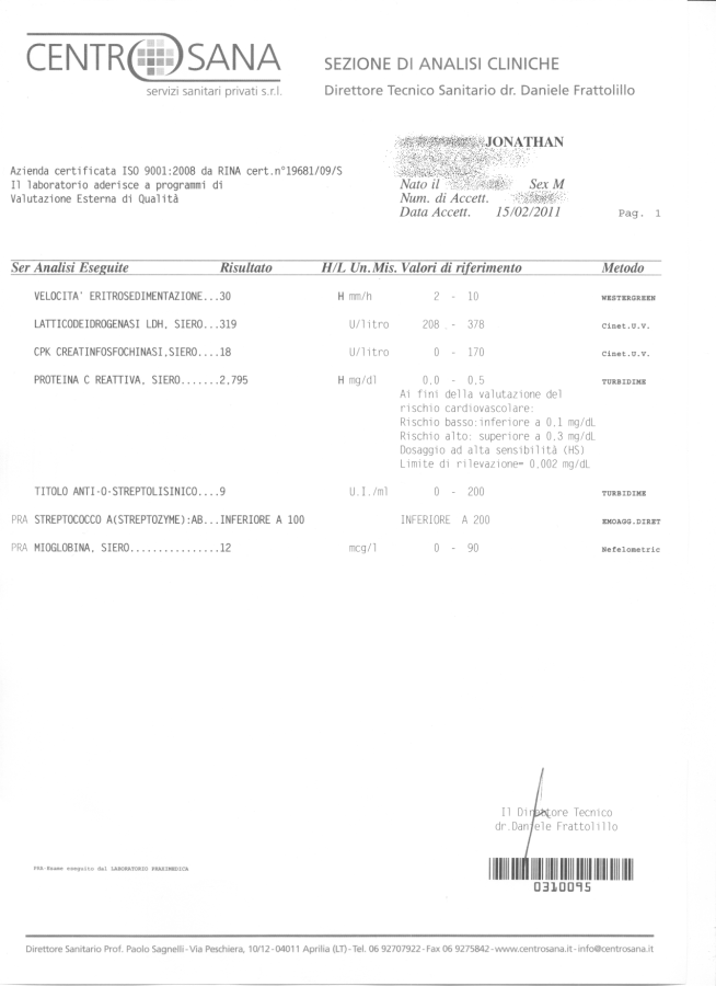 Esami del sangue del 15 febbraio 2011