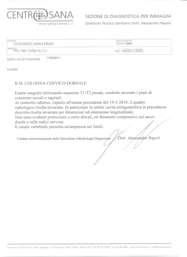 Rm colonna cervico-dorsale dell’11 marzo 2011