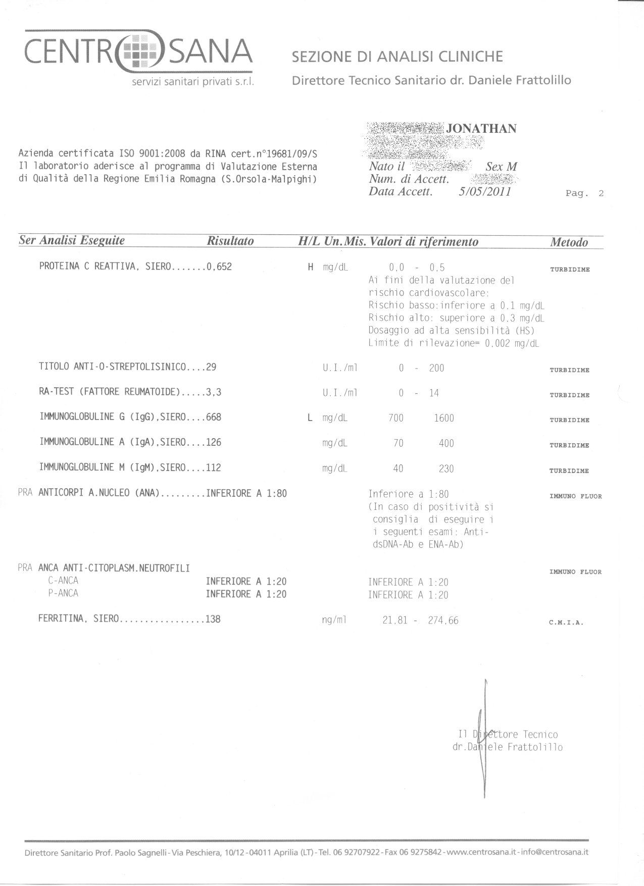 Esami del sangue del 5 maggio 2011 (pag.2/4)