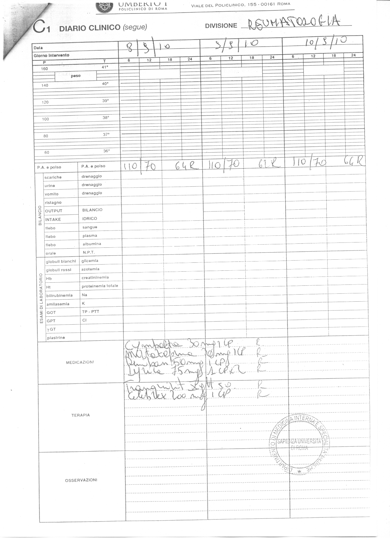Cartella clinica Umberto Primo (pag.11/43) – Diario clinico