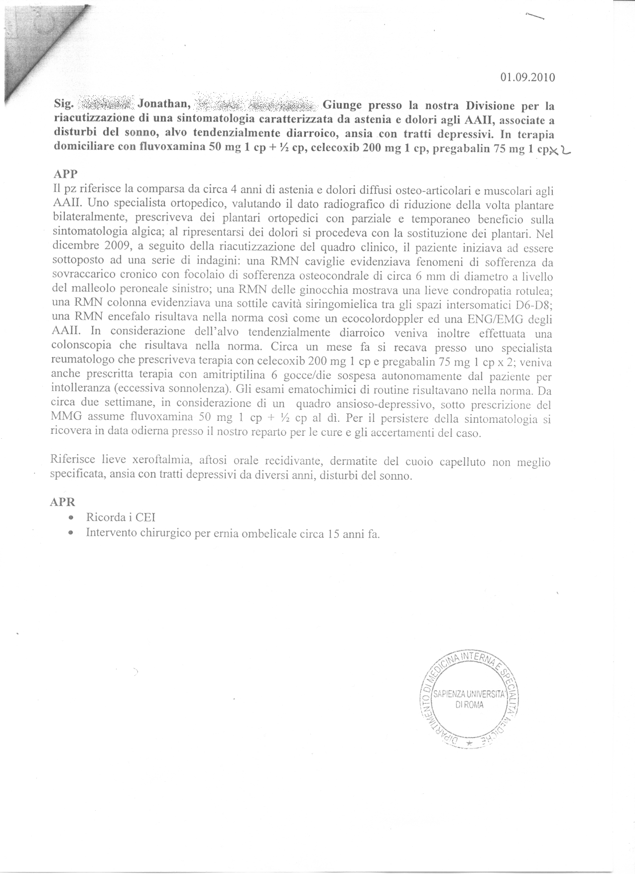 Cartella clinica Umberto Primo (pag.12/43) – Storia del paziente