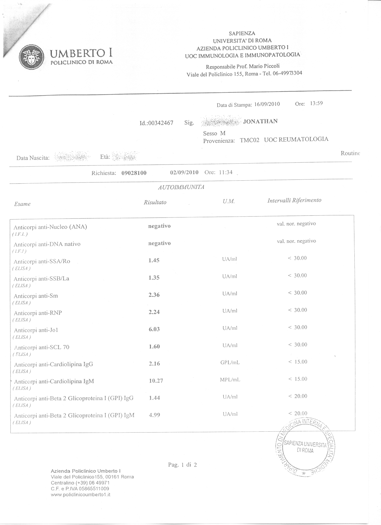 Cartella clinica Umberto Primo (pag.27/43) – Esami del sangue